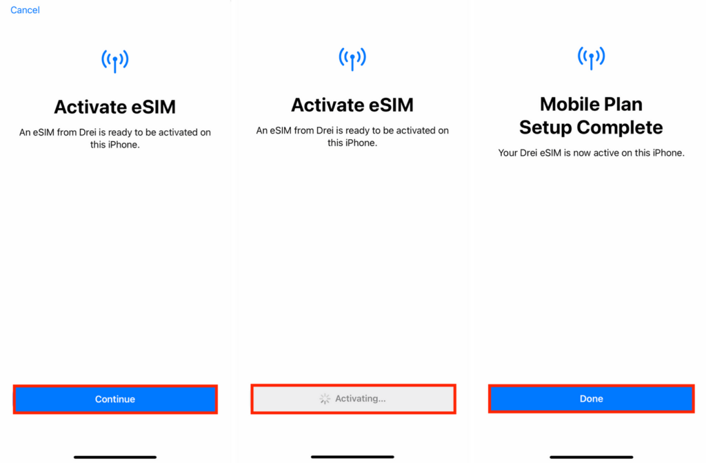 De eSIM is nu geïnstalleerd en geconfigureerd.