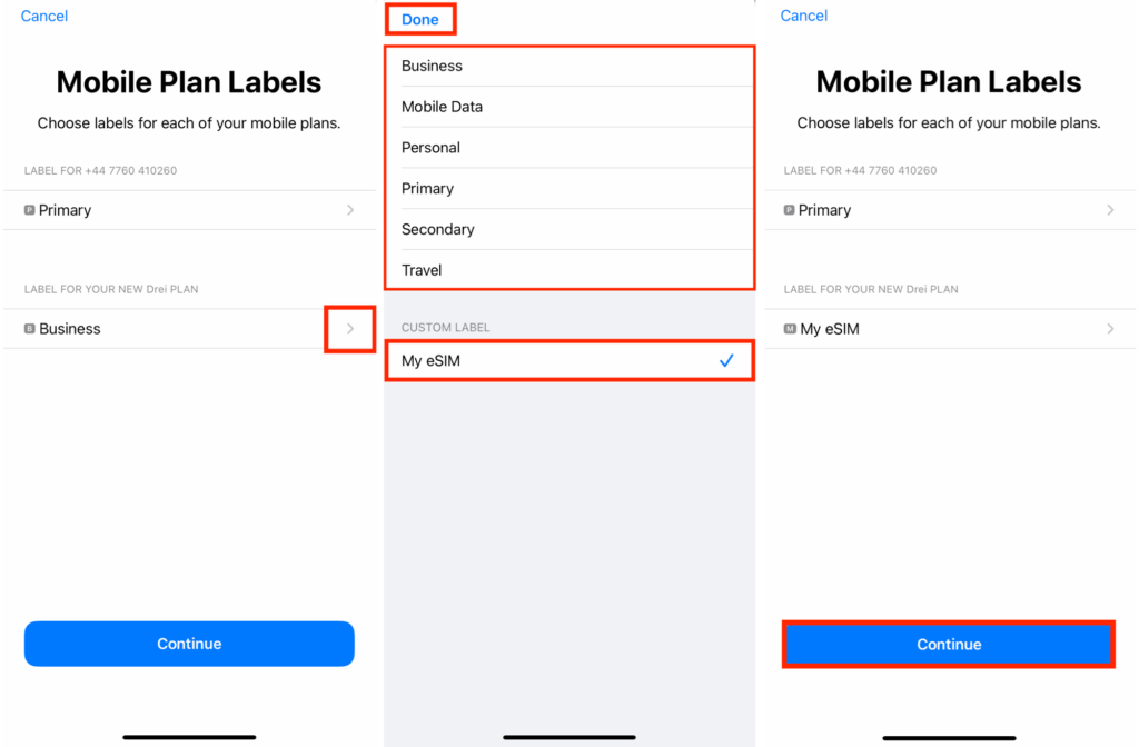 Als u het eSIM-label wilt wijzigen voordat u naar de volgende stap gaat: